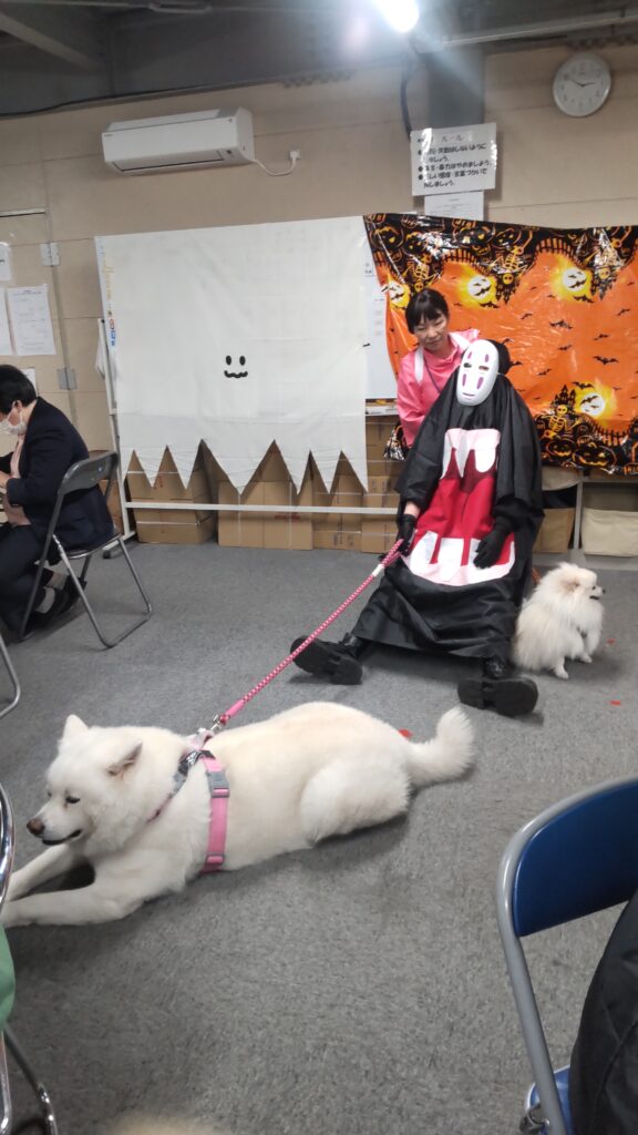 小白くんは、骸骨の職員にびっくりして吠えちゃった💦