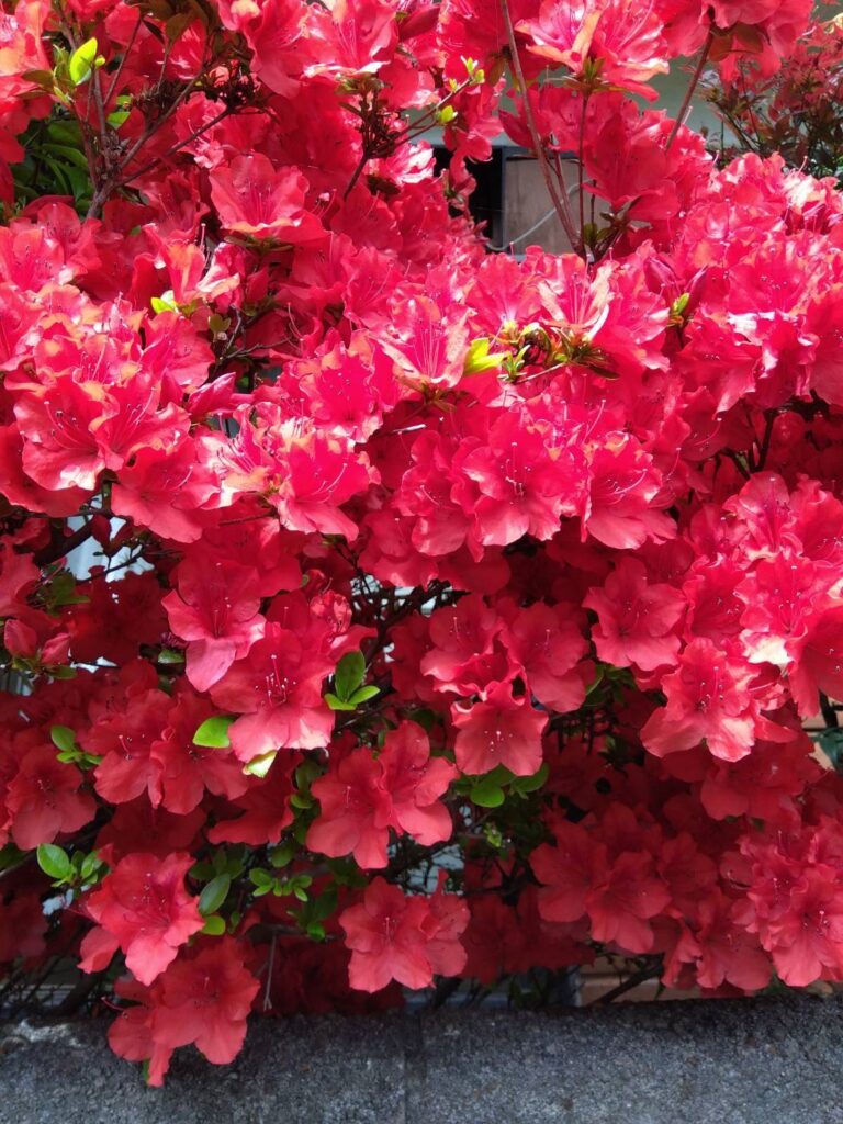 ピンクのツツジを前にイケメン集合😊